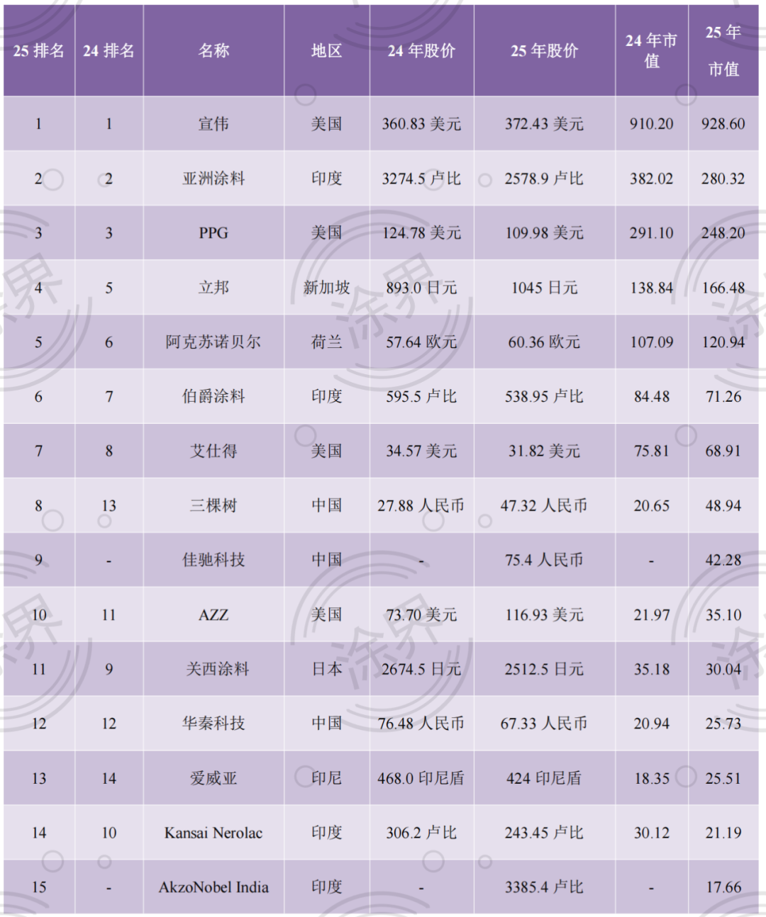 【聚焦】2025亚太涂料企业50强:TOP10排名生变,25家中企登榜